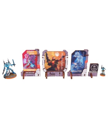 Precinct Sigma Display Arrays (3) PREPAINTED are three high cover pieces displaying art set in Infinity universe, dedicated for Infinity the Game and designed in cooperation with Corvus Belli.