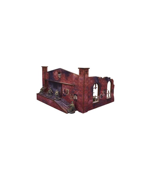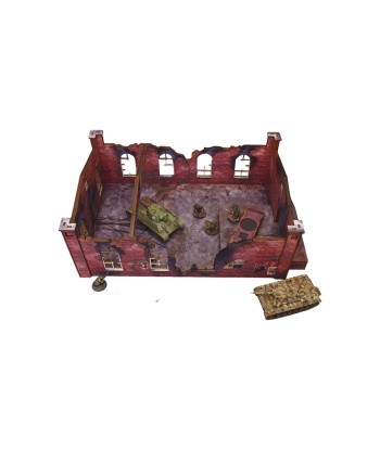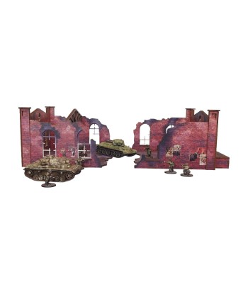 Multicolor prepainted (UV-printed) WW2 Ostfront Stalingrad Factory Back (with ramp) is a part of a ruined manufactory building with a ramp and bare tank hull that forms a full ruined factory together with Stalingrad Factory Front (available separately).