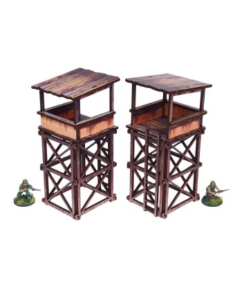Multicolor prepainted (UV-printed) WW2 Pacific Guard Towers (2) are 2 elevated watchtowers with a ladder, pefect to represent common South East Asia and Oceania architecture of 20th century.